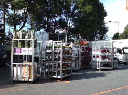 セリ開始時間まで、下見をしています どれを買おうかなぁ〜 さすが、日本一の市場だねぇ ここのフロアーのほかに、地下に蘭置き場、3階建ての新館、 外の広〜い、駐車場等、下見だけで疲れます。 |