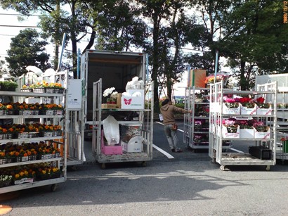 PM1:00〜2:00に到着、待ちわびたお客様やスタッフが荷台を覗き込みます 注文者毎に配達用軽トラ&バンに乗せ換えて 配達にGO。 |