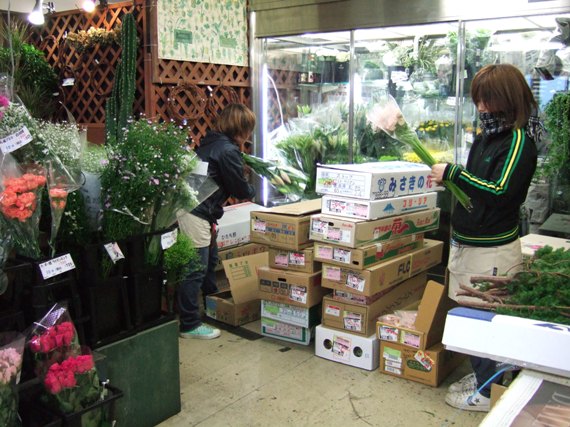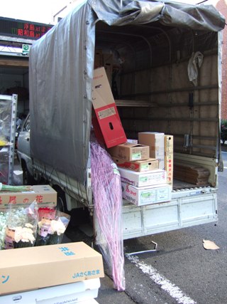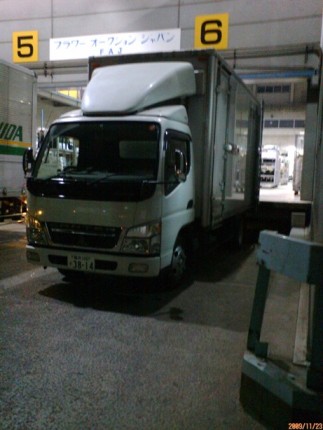 月・水・金の朝4時に市場到着、前日に買付をしたお花の振分けなどを行っています 1便の荷物、約100ケース〜200ケース… ↑これは平均より少ないほうですね。 |
