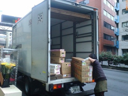 ![]() さあ〜 戦争開始、PM1:00〜PM3:00がお客様ご来店のピーク WebからFAX注文いただいた商品をピッキングしたり、箱詰めしたり、伝票書いたり… 主に市内の「お花屋さん」や、「教室」、「葬儀屋」、「結婚式場」等に配達だぁ GO!! あっという間にPM5:30 ふぅ〜チ・カ・レ・タ・ビィ・〜 |