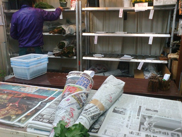 | AM5:30ごろ到着、早番のスタッフが総出で荷降ろし、お客様毎に 仕分け伝票書き。 月・水・金はAM8:30から販売開始 先取り(予約相対)分は「全て高い」何てことはありません 前日に、大田市場や他の市場の入荷情報を入手し、セリ買い分と、相対分を見極め 市場の営業さんと交渉して妥当又は、激安で買い付けております 交渉術は、ナイショ。 だから、セリより安く手に入るものも多いのですよ。 |